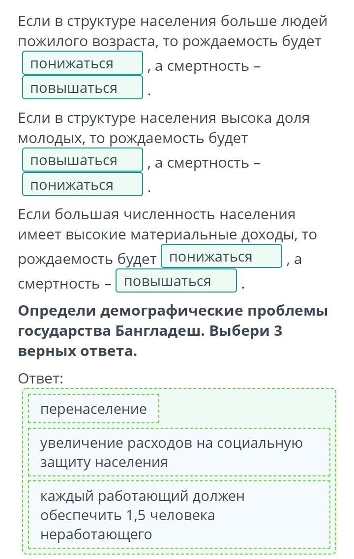 Определи демографические проблемы государства Бангладеш. Выбери 3 верных ответа.