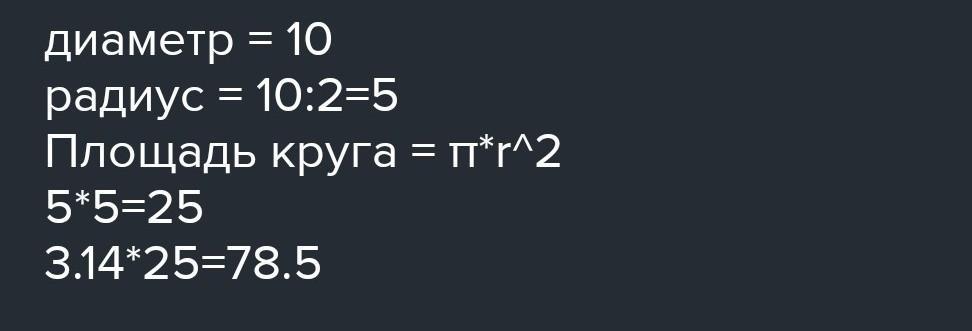 2. Найдите площадь круга, диаметр которого равен 10см.