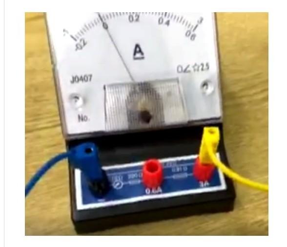 На картинке изображен амперметр, который подключен к какому-то участку цепи. По характеру подключения проводов к клеммам определите, шкалой с каким пределом измерений и ценой деления прибора пользовались в работе