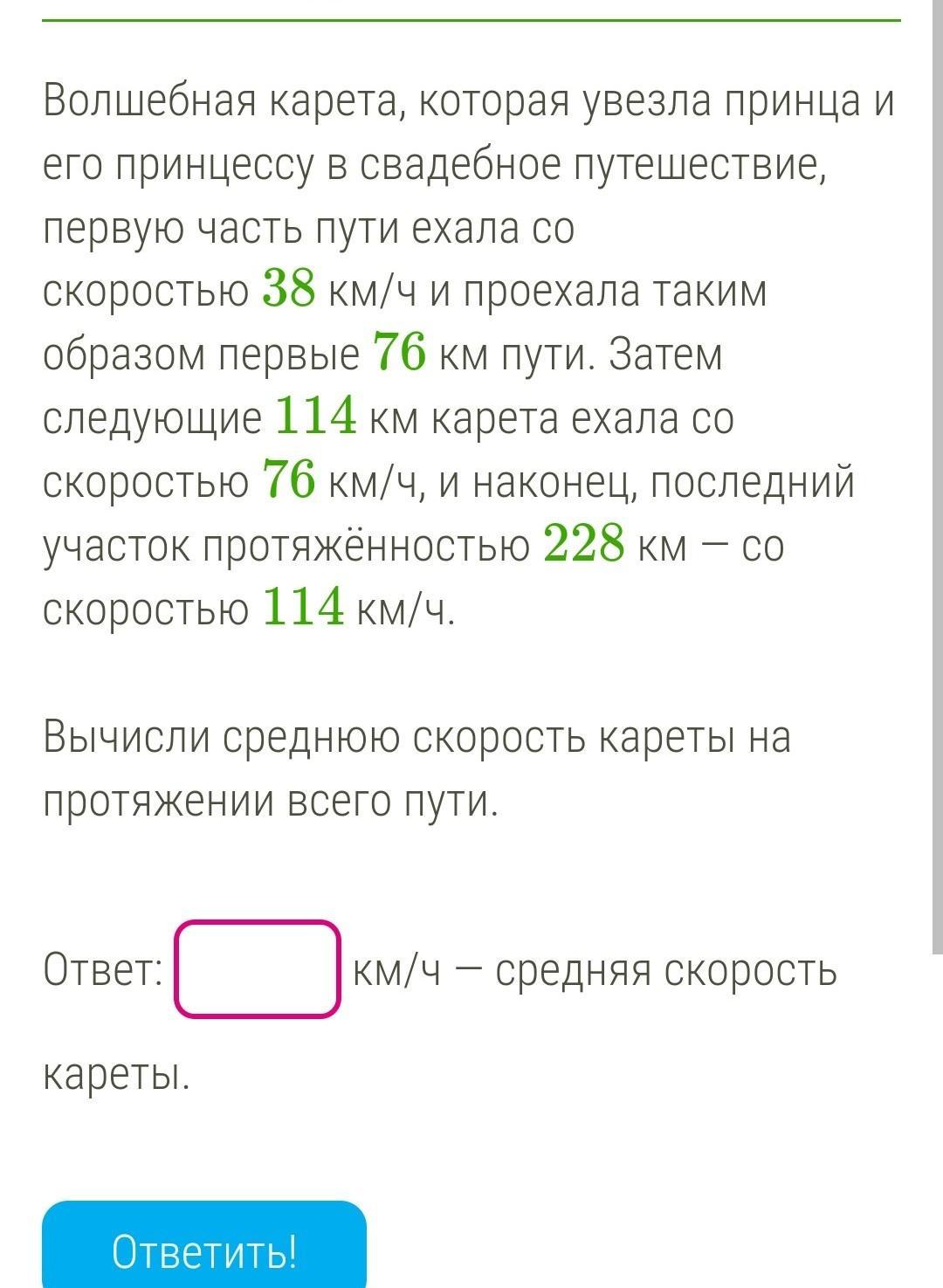 t= 76/38 + 114/76 + 228/114 = 2 + 1,5 + 2 = 5,5 (часа).