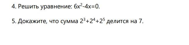 5) 2³ + 2⁴ + 2⁵ = 2³(2⁰ + 2¹ + 2²) = 2³(1 + 2 + 4) = 2³ * 7, делится на 7.