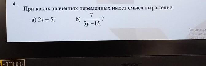 При каких значениях переменных имеет смысл выражение: 7 а) 2x + 5; b) ? бу – 15 Активация Чтобы активир