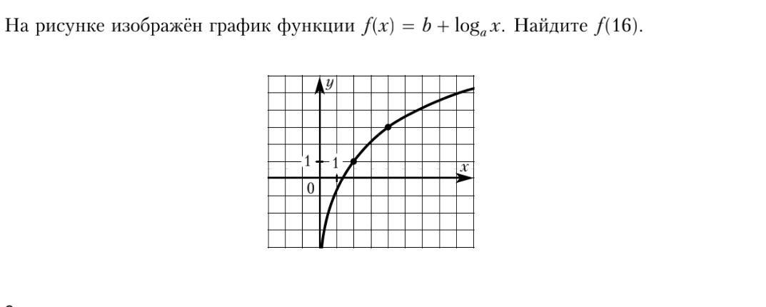 f(2) = 1; f(4) = 3. по графику. Далее решаем простенькую систему из двух уравнений. b + loga(2) = 1; b +loga(4) = 3. loga(4/2) = 2; loga(2) = 2. a = sqrt(2); b = -1; f(16) = -1 + logsqrt(2)(16) = 8 - 1 = 7