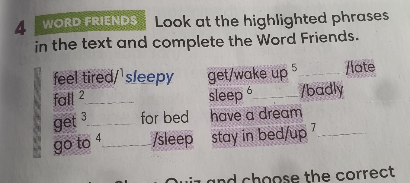 3-get up 4-go to bed 5-get up at seven o'clock 6-I don't sleep well 7-dream of getting up early
