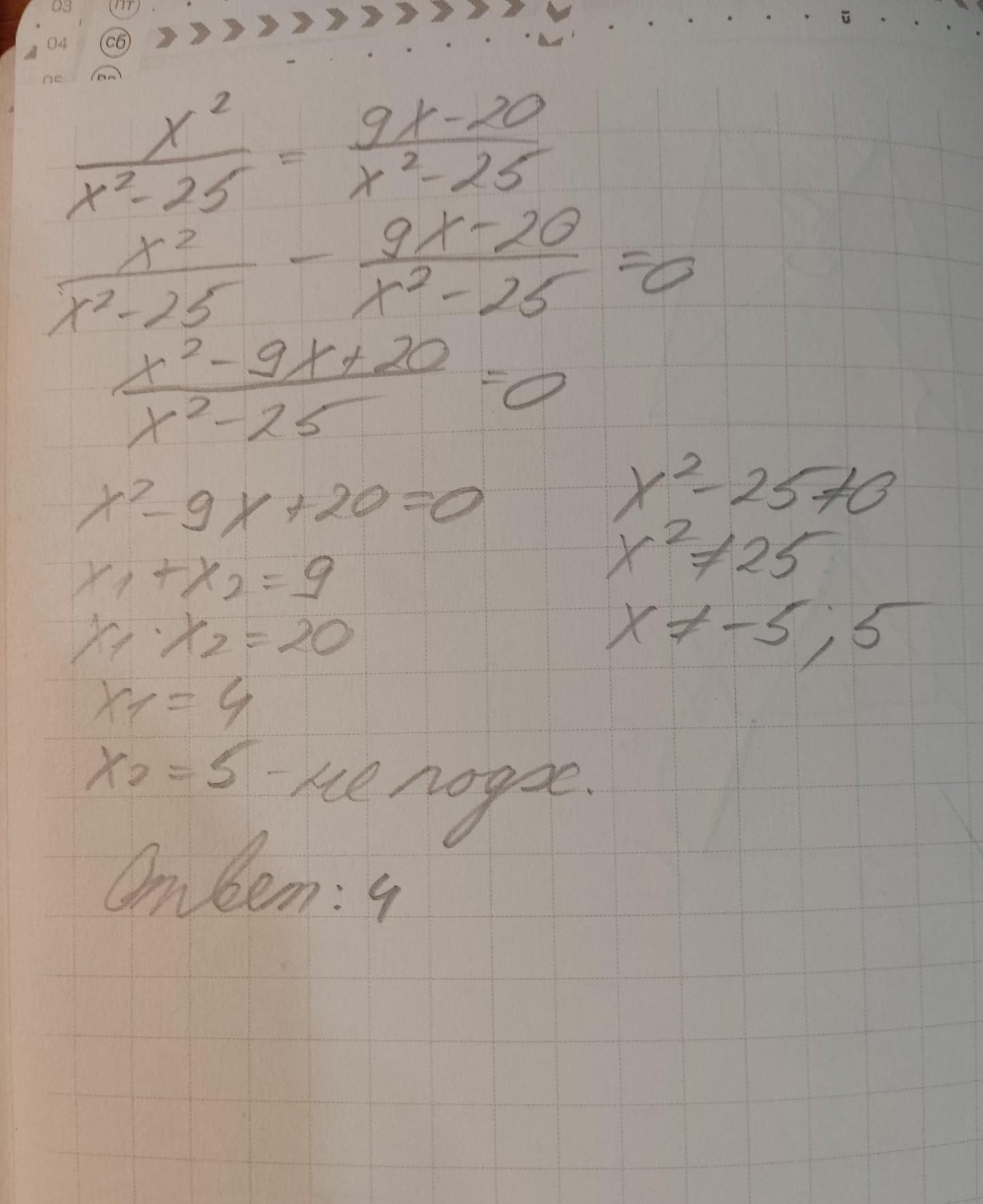 x²/x²-25 = 9x-20/x²-25
