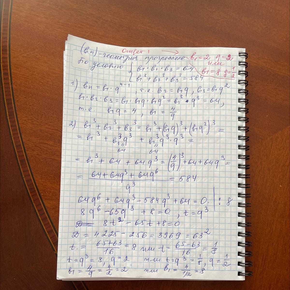 Если произведение первых трех членов геометрической прогрессии равно 64, а сумма кубов равна 584, то найдите прогрессию.