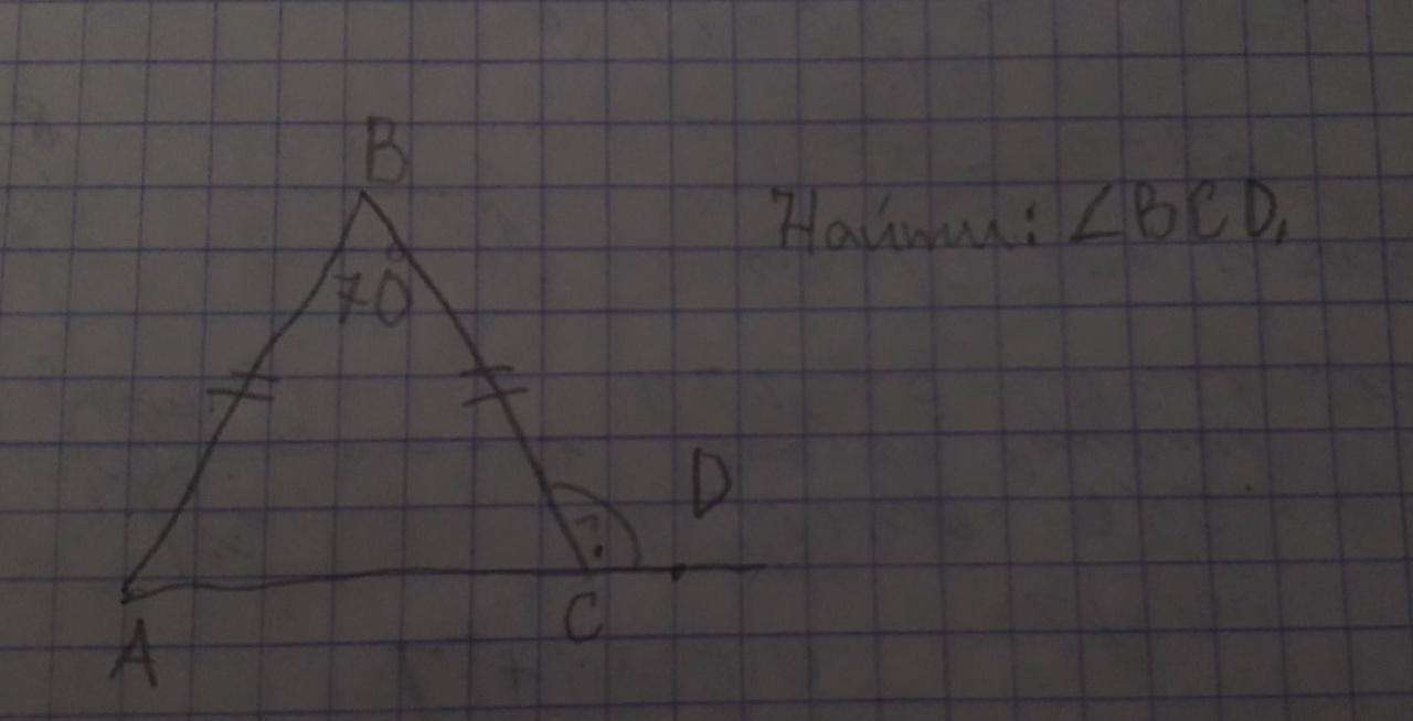 Сначала найдем угол ВСА:1(180-70)/2=55°