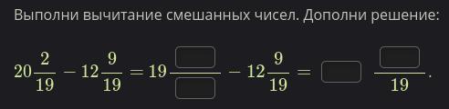 20 2/19 - 12 9/19= 19 21/18 - 12 9/19= 7 12/19