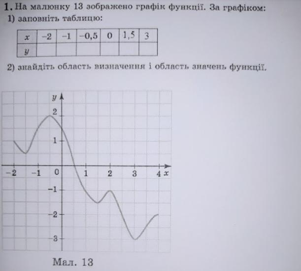 значения y : 1; 1,5; 2; 1,5; -1,5; -3