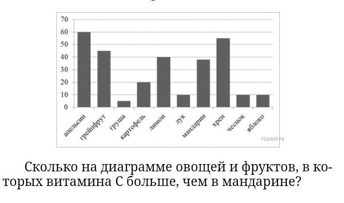 На диаграмме показано содержание витамина C в некоторых фруктах и овощах (миллиграммов на 100 граммов продукта). Пользуясь этими данными, ответьте на вопросы