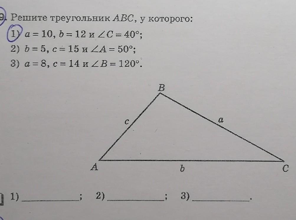 3)b²=c²+a²-2ca*cosB=64+196-224*0,5=260-112=148