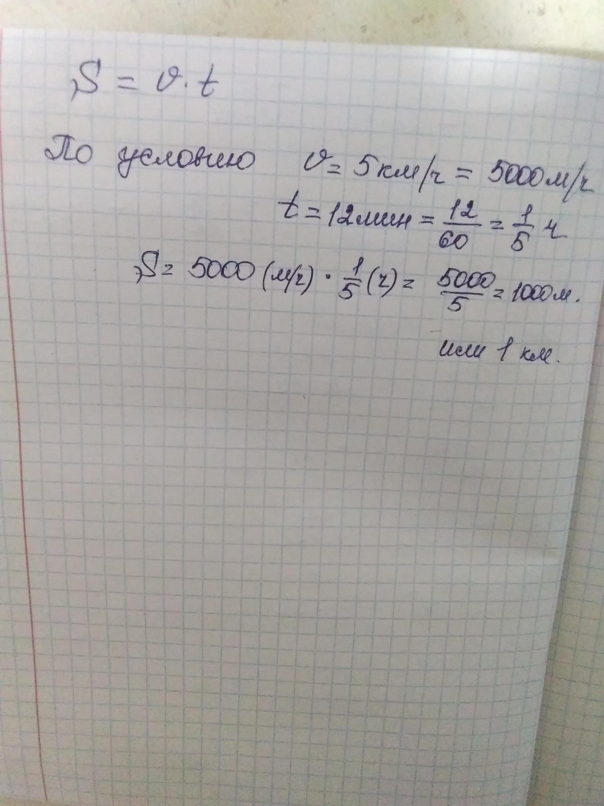 пешеход движется со скоростью 5 км/ч сколько метров он пройдет за 12 мин