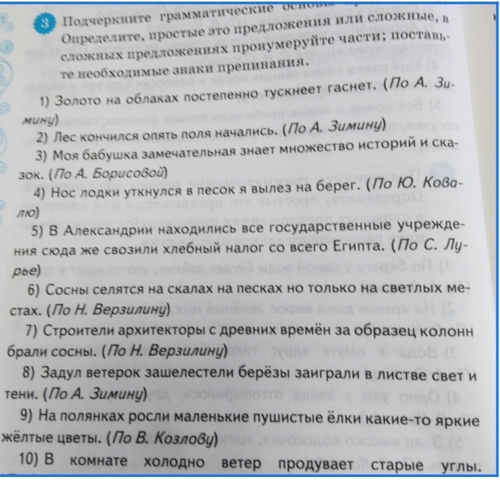 8. Задул ветерок, зашелестели березы, заиграли в листве свет и тени. (Ветерок, березы, свет и тени - подлежащее, задул, зашелестели, заиграли - сказуемое)