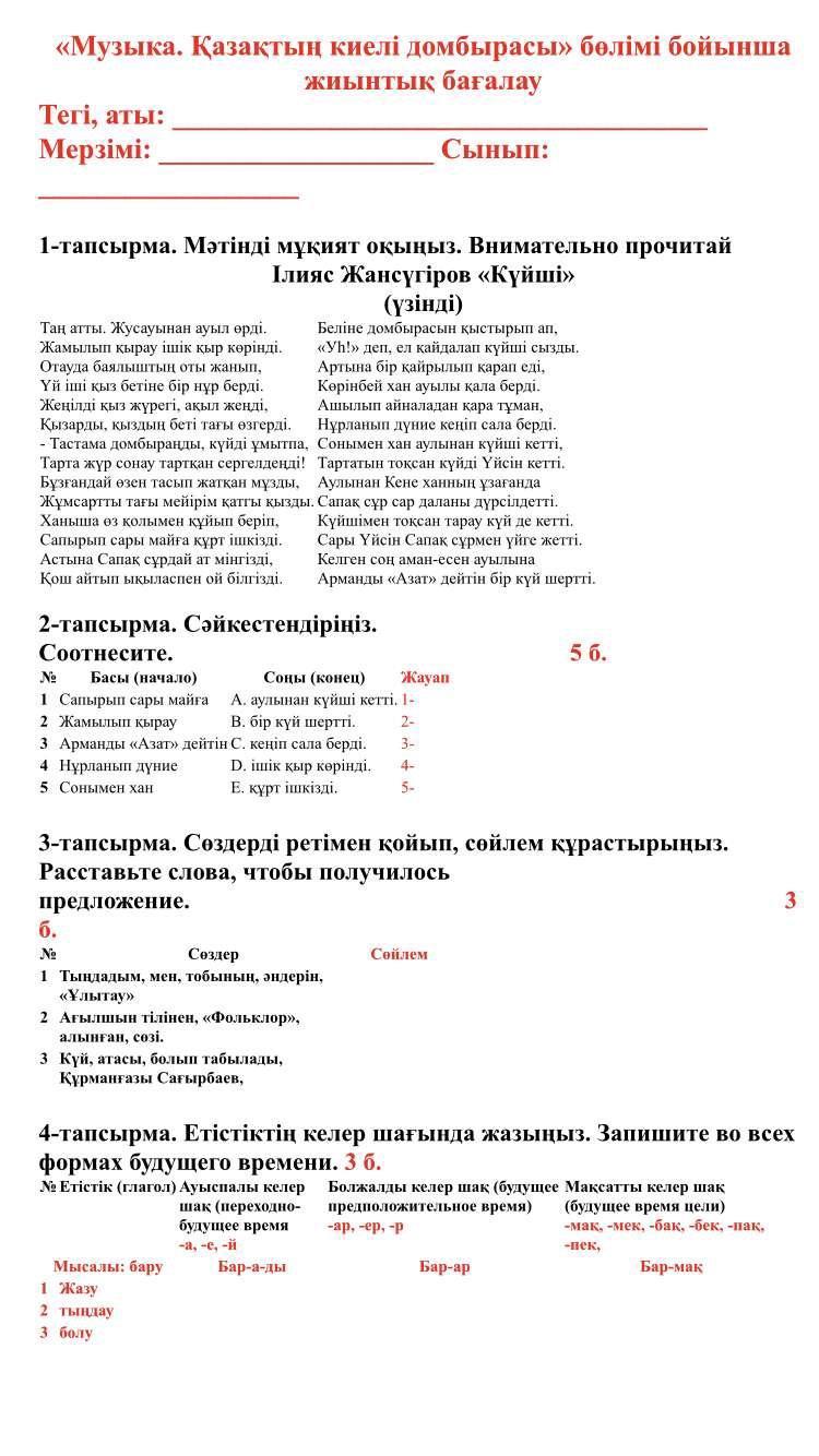 тапсырма. Сәйкестендіріңіз. Соотнесите.