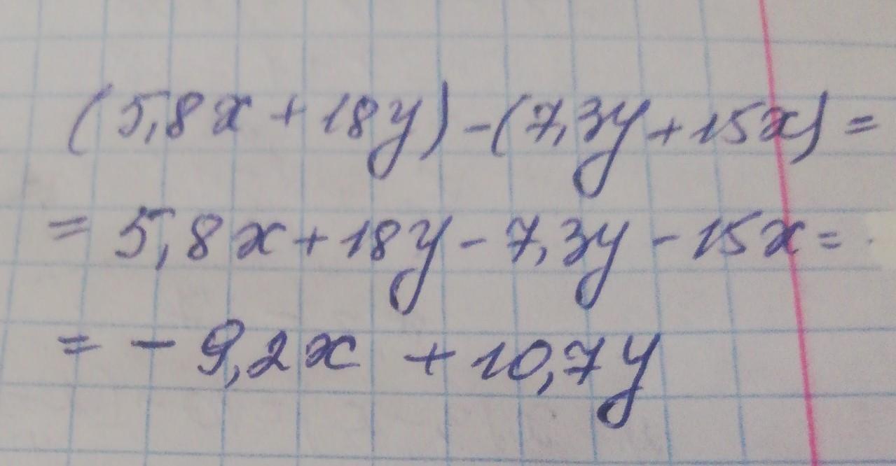 (5,8x+18y)-(7,3y+15x)==5,8х+18у-7,3у-15х