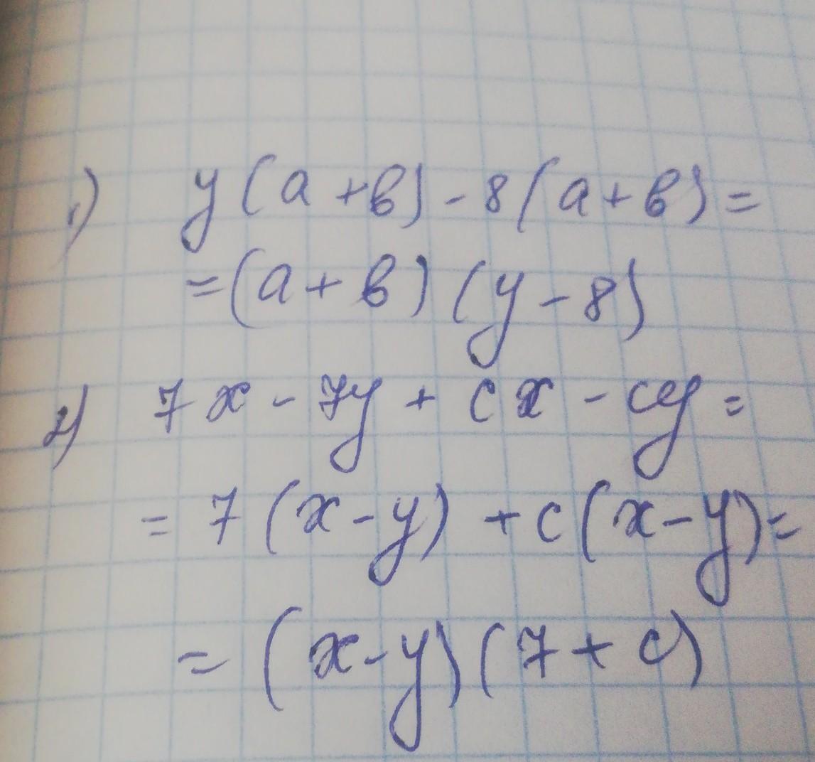 Разложить на множители а) у(а+b) -8(a+b) б) 7x-7y+cx-cy