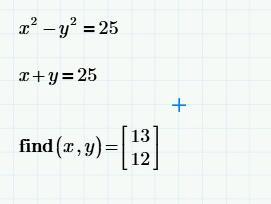 Решите задачу с помощью составления уравнения. Разность квадратов двух чисел равна 25, а сумма этих чисел тоже равна 25. Найдите эти числа.