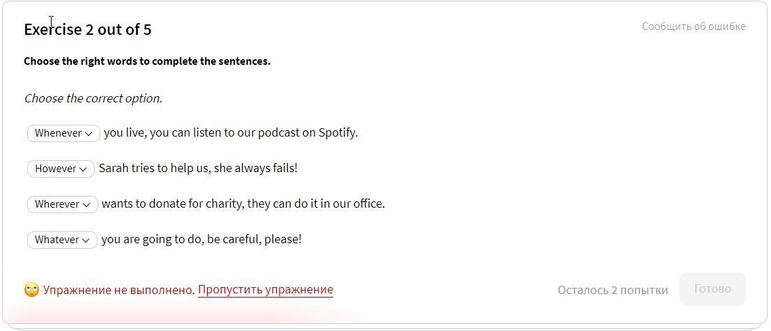 Помогите сделать задание. 1) нужно вставить whenever или wherever 2) however или whoever 3)wherever или whoever 4)whatever или whichever 20 баллов