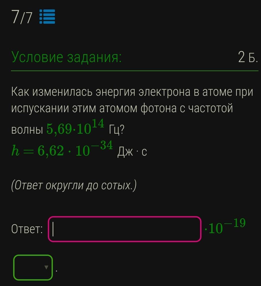 Как изменилась энергия электрона в атоме при испускании этим атомом фотона с частотой волны