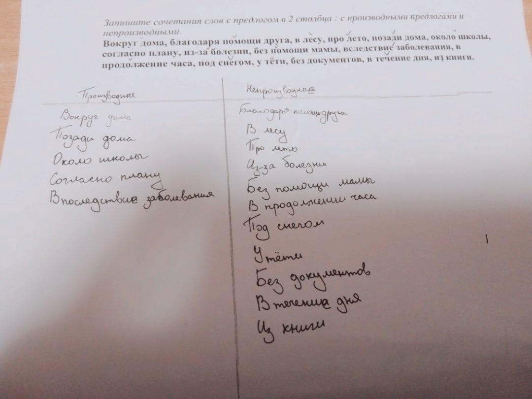 Запишите сочетания слов с предлогом в 2 столбца : с производными предлогами и непроизвольными