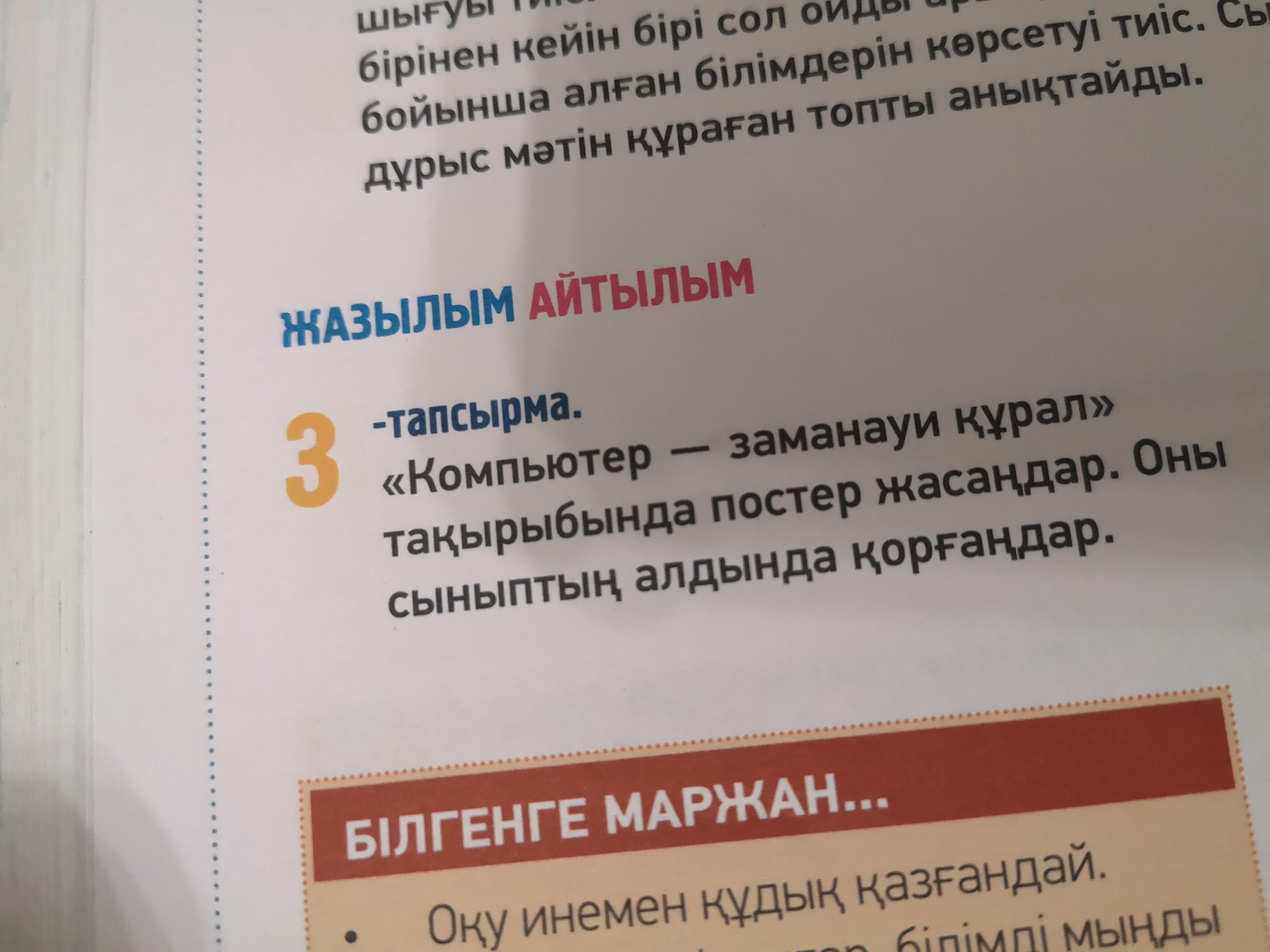 "Компьютер - заманауи құрал" тақырыбында постер жасаңдар. Оны сыныптың алдында қорғандар