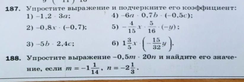 6) 1. 3/5х * (-15/32у) = 8/5 * (-15/32) * х * у = 1/1 * (-3/4) * Ху = -3/4ху