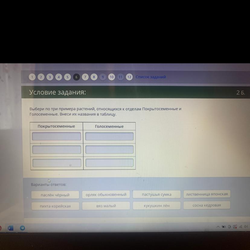 Покрытосеменные: паслен чёрный, вяз малый, пастушья сумка