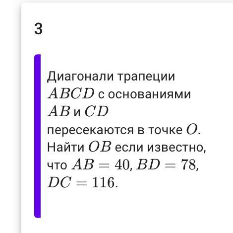 Диагональ BD делится точкой O в такой же пропорциональности: