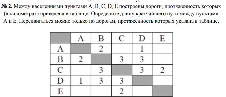 (в километрах) приведена в таблице: Определите длину кратчайшего пути между пунктами