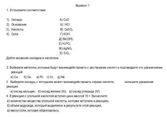 1) Оксиды: СuO; SiO2; (оксид меди; оксид кремния);