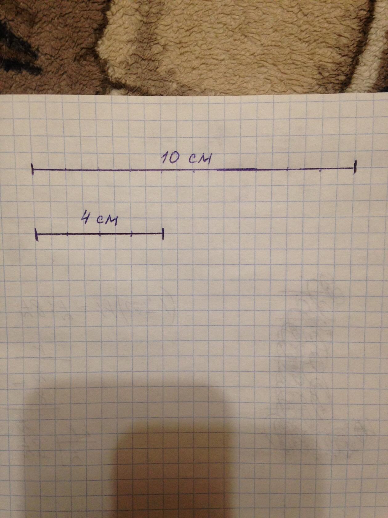 10 * 2/5 = 20/5 = 4 (см) - второй отрезок