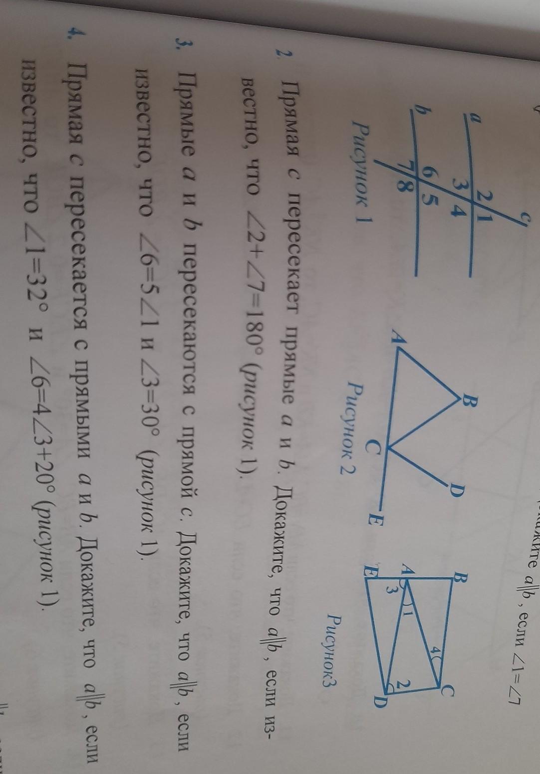 Угол2 переходит на место угла4, а угол7 переходит на место угла5. И если эти углы становятся внутренними одосторонними, то их сумма равна 180градусов и a//b.