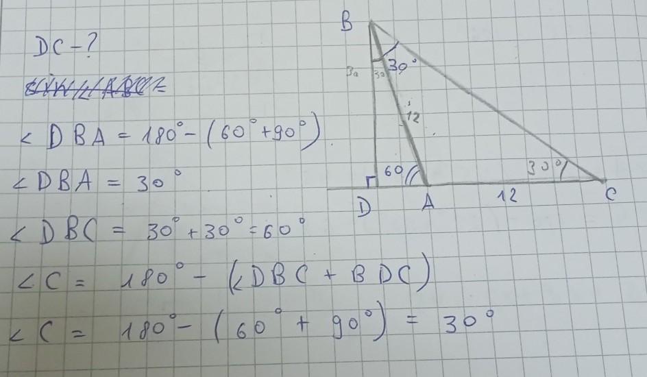 Розв'яжіть задачу за рисунком. Знайдіть DС, якщо АC=12см.У відповідь запишіть число.
