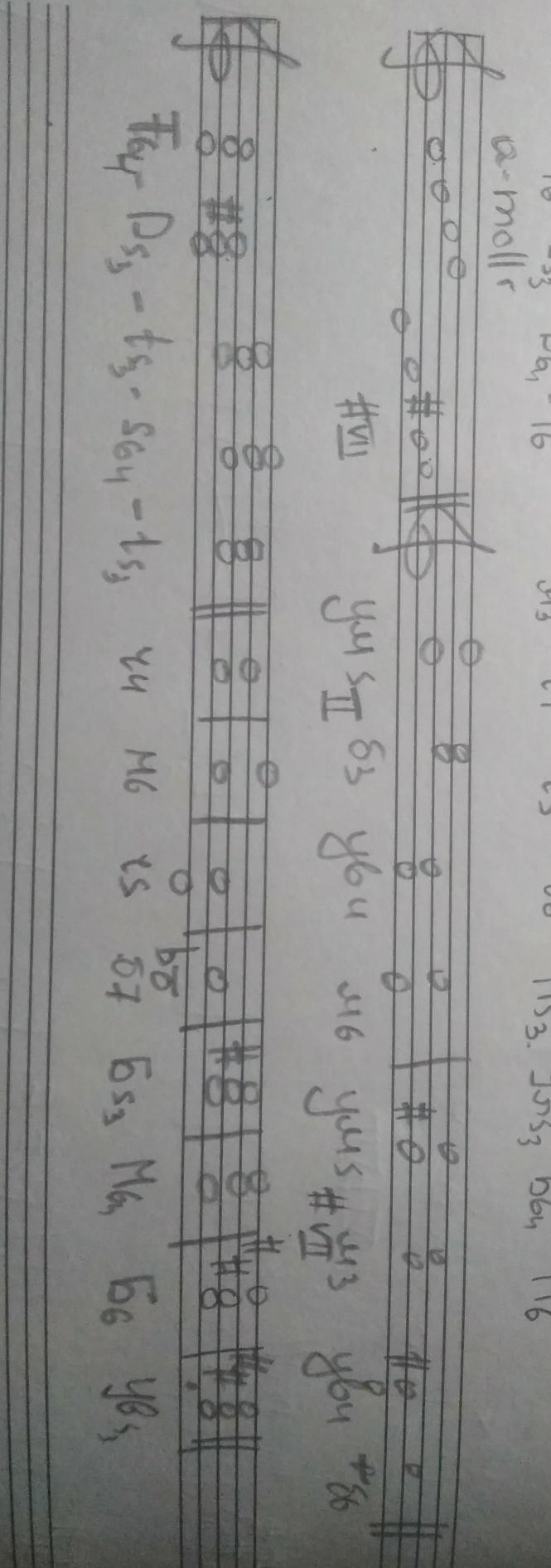 1.Что такое трезвучие? Главные трезвучия лада и их обращения. 2.Построить и спеть ля-минор гармонический вид. 3.Построить и спеть в ля-миноре тритоны с разрешением. 4. Построить и спеть в ля-миноре: T64-D53-T53-S64-T53 5.Построить и спеть от звука "ля" вверх - ч4, м6; а вниз ч5, б7. 6.Построить и спеть от звука "ля" вверх:Б53, Ув53, М64, Б6.
