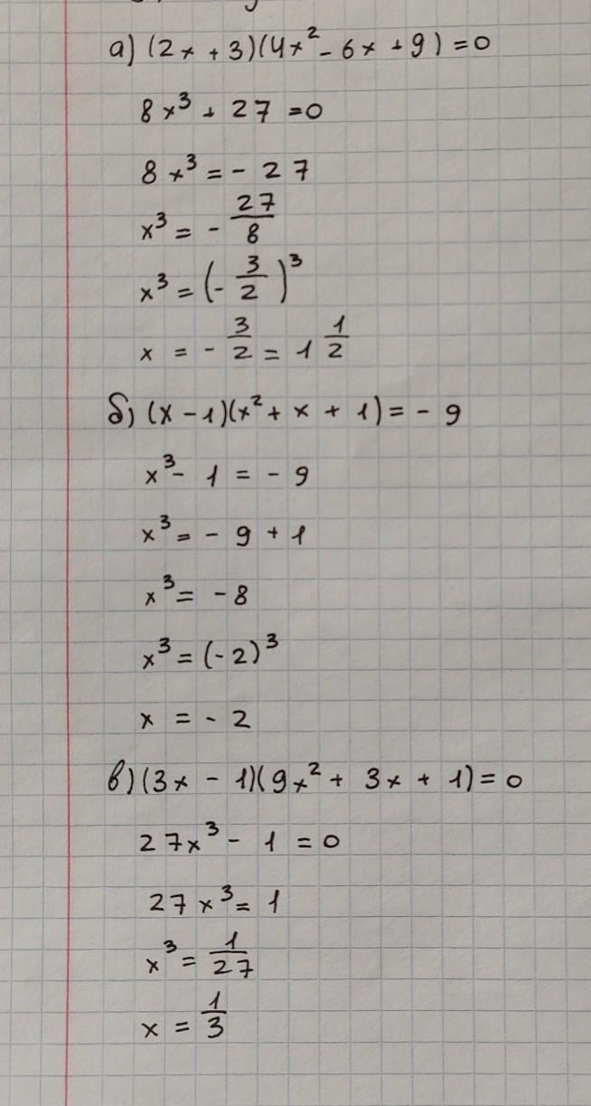 в) (3х - 1)(9х^2 + 3х + 1) = 0;