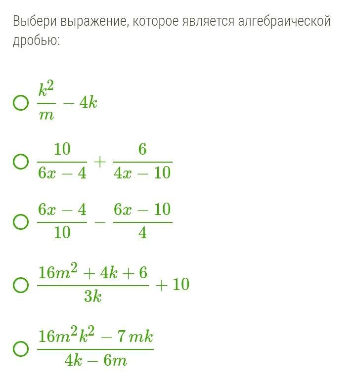 Алгебраическая дробь — это дробь, в числителе и/или знаменателе которой стоят алгебраические выражения (буквенные множители).