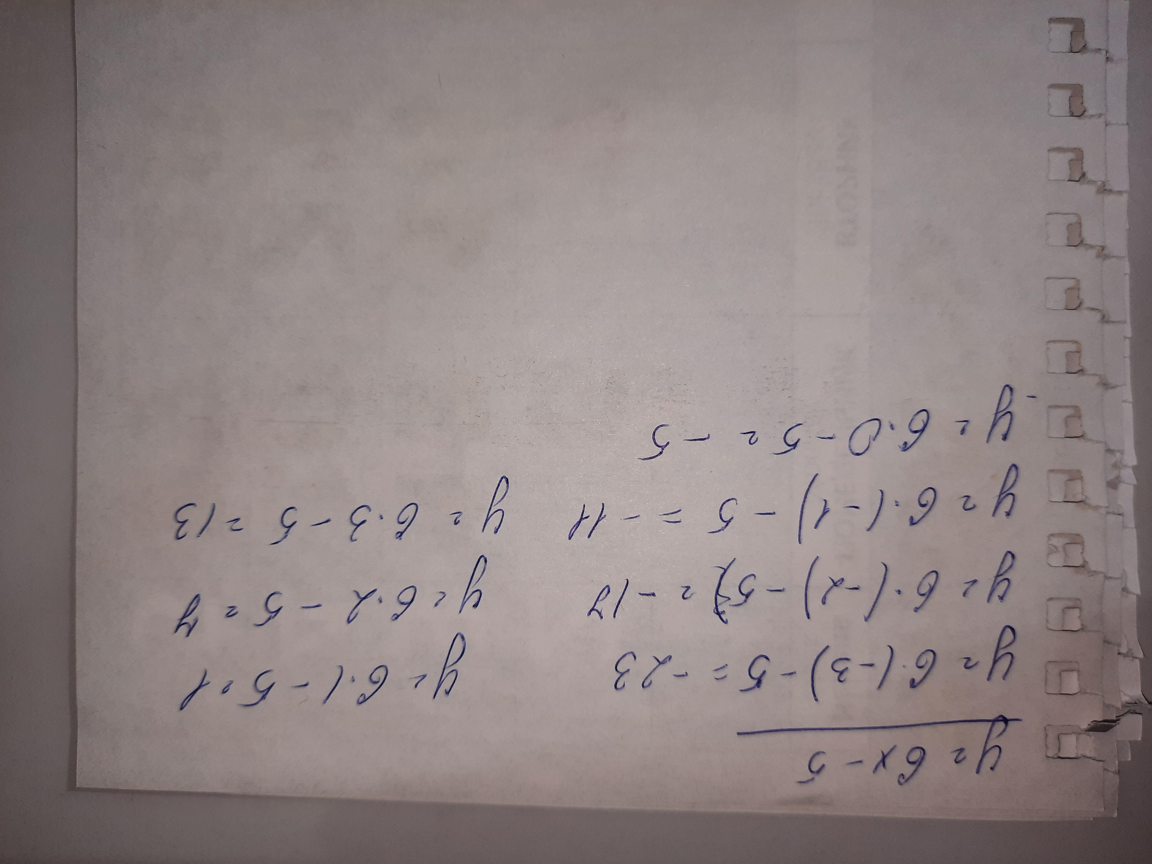 6 × ( -3) -5 и так дальше считай , просто подставляй под x в уравнении цифры которые в табличке и дальше калькулятор в помощь
