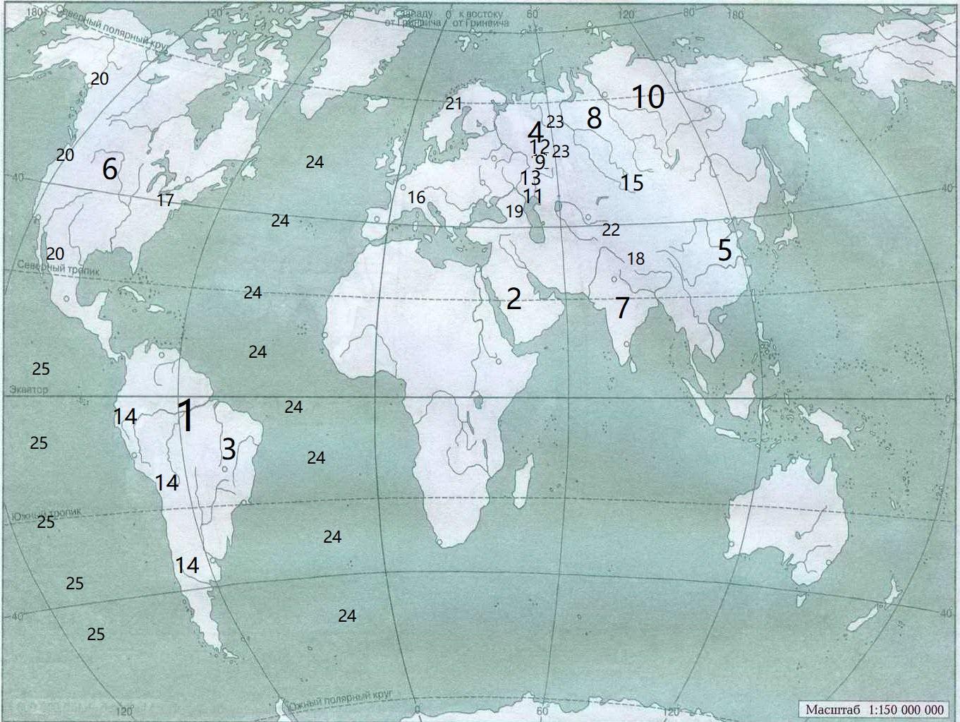 - Контурные карты с нанесёнными на них объектами даны ниже в приложении