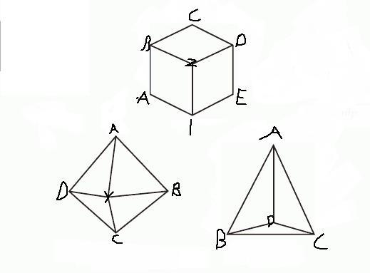 нарисовать три любые геометрические фигуры-многогранники и подписать буквами вершины, грани, рёбра