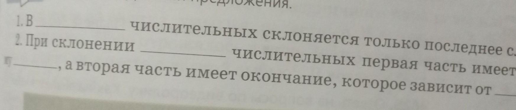 В составных порядковых числительных склоняется только последнее слово, при склонении сложных порядковых числительных первая часть имеет форму родительного падежа, а вторая часть имеет окончание, которое зависит от формы порядкового числительного.