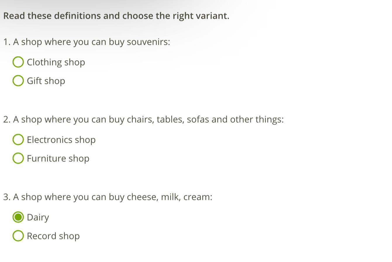 Read these definitions and choose the right variant.