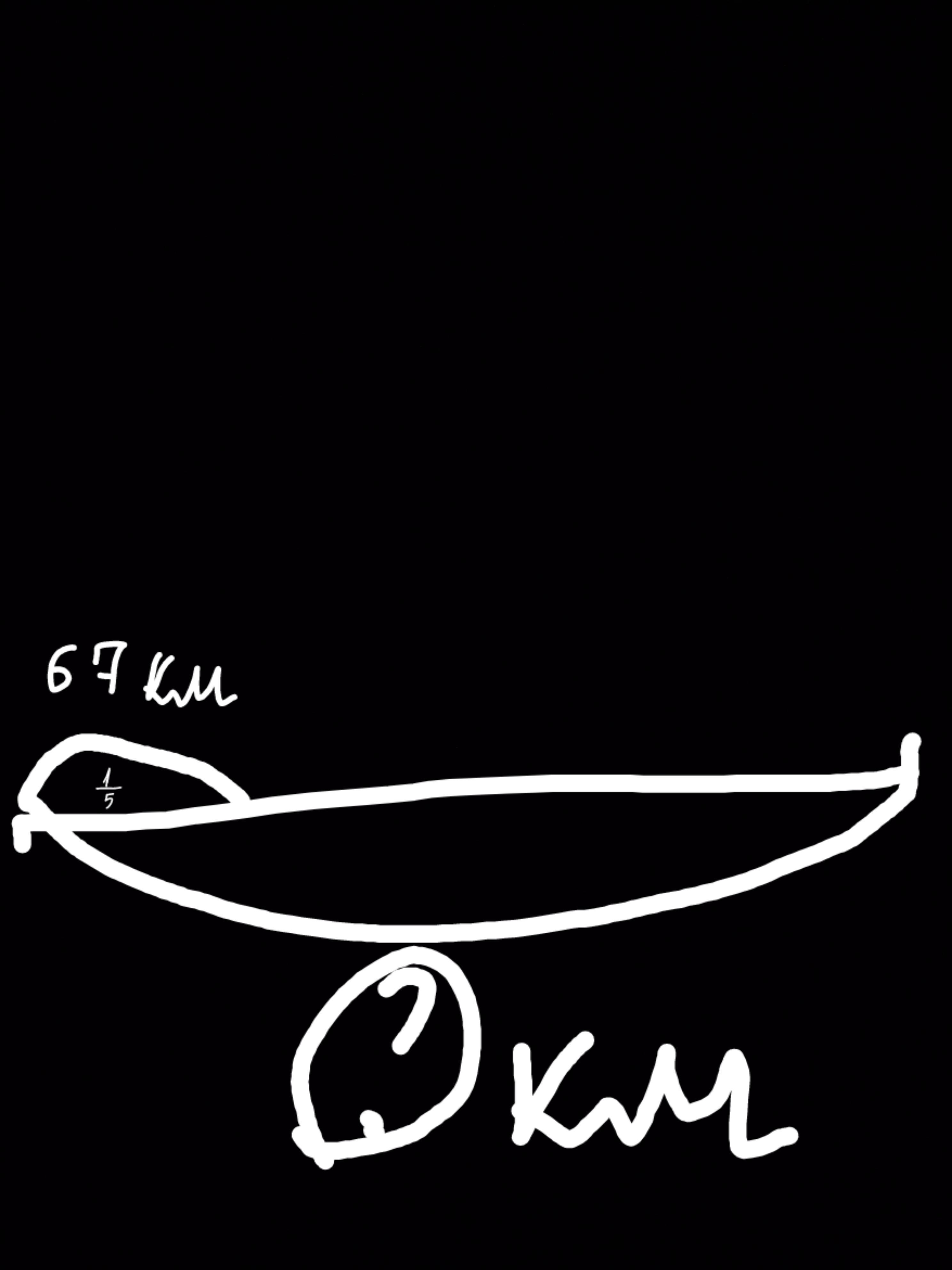 Элли с друзьями прошла 67 км, что составило пятую часть всего пути. Чему равна длина всего пути?
