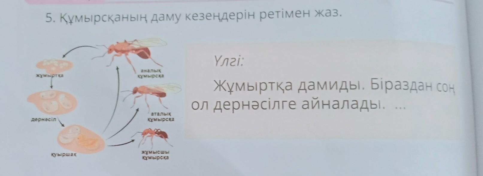 Содан кейін қуыршақ болады.Содан соң жұмысшы кұмырска болады.Біраздан соң аталық құмырсқа болат