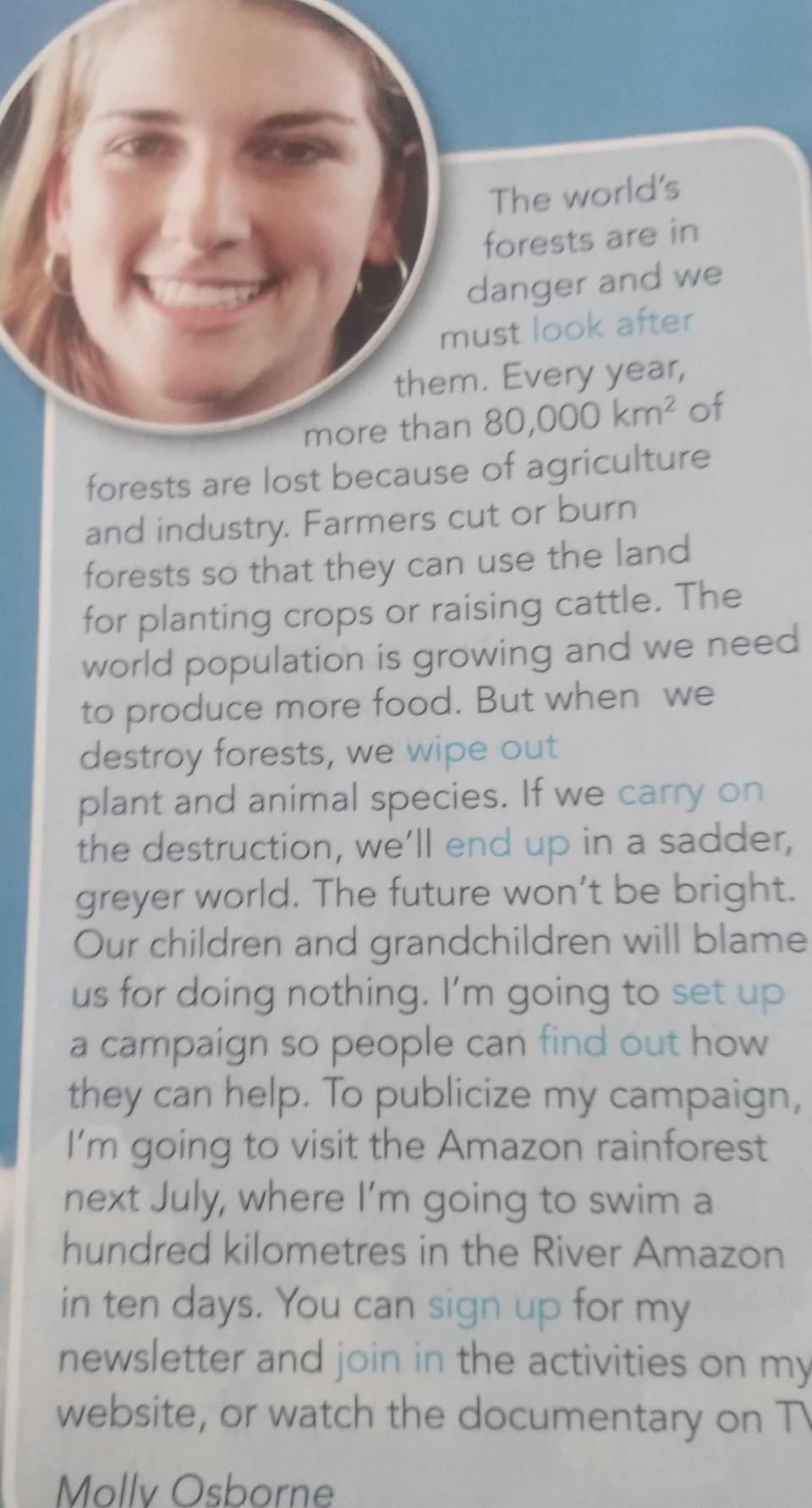 Read and listen to the text and cheac the meaning of the verbs in blue then match the verbs with synonym 1-8