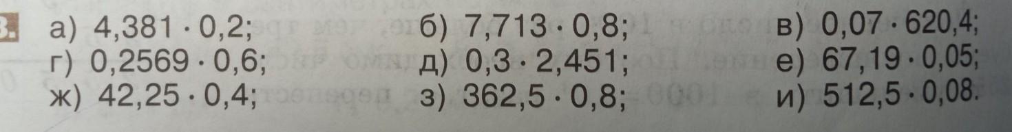 в) 0,07 * 620,4 = 43,428 ; е) 67,19 * 0,05 = 3,3595 ;