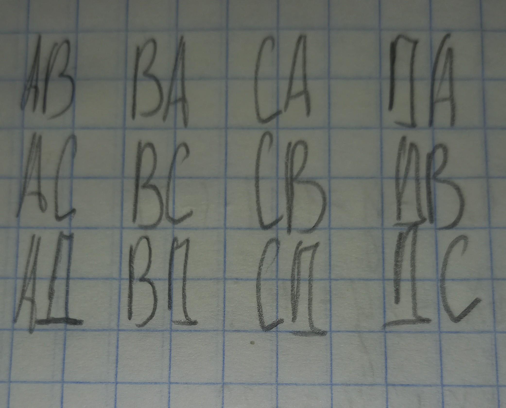2.Даны 4 буквы А, В, С, Д. Сколько комбинаций по две буквы можно из них составить?