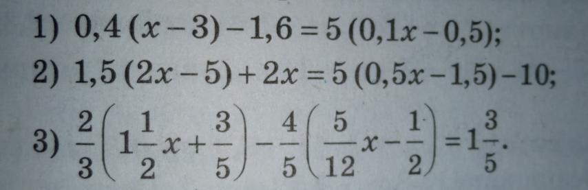 1) 0,4(х-3)-1,6=5(0,1х-0,5)