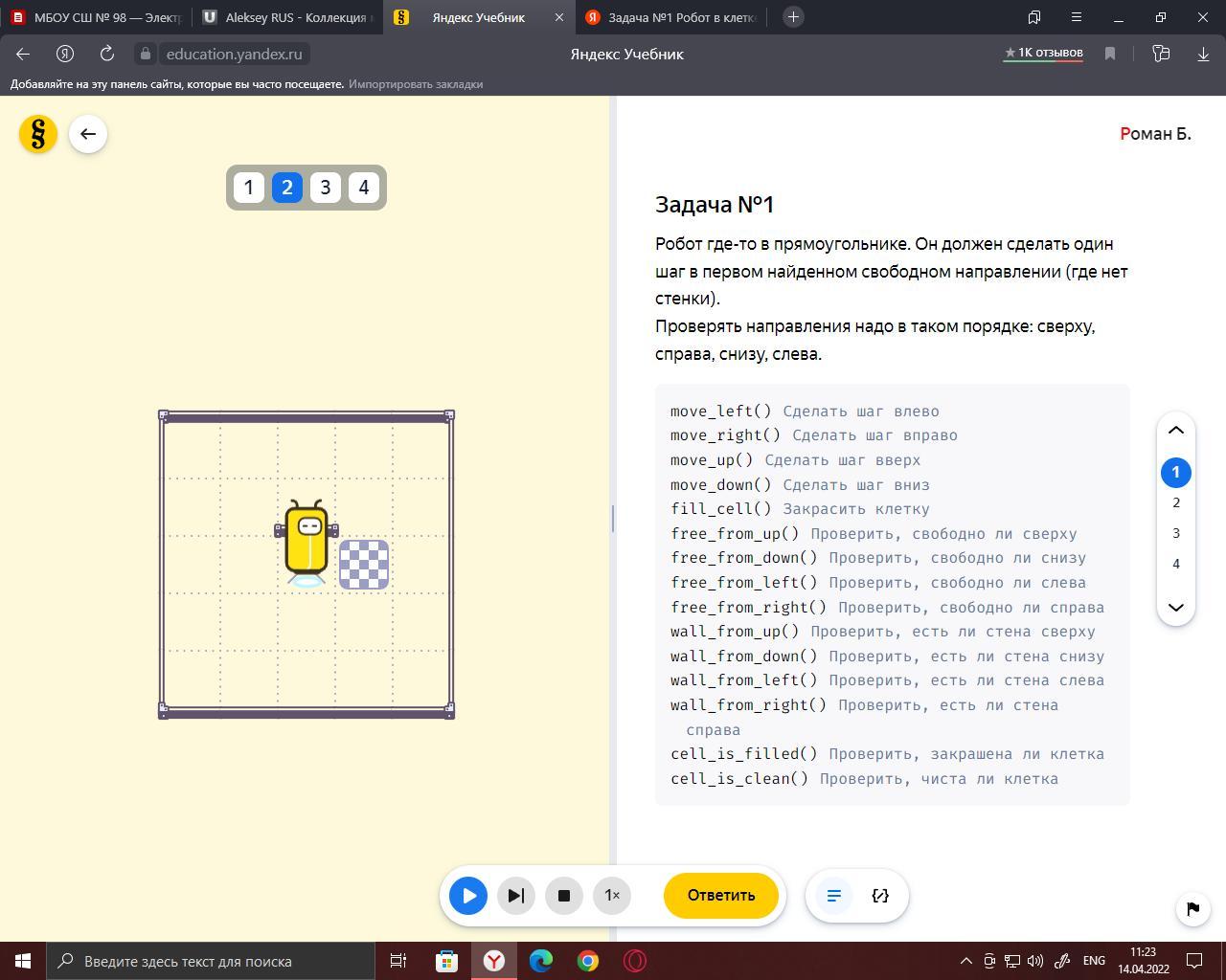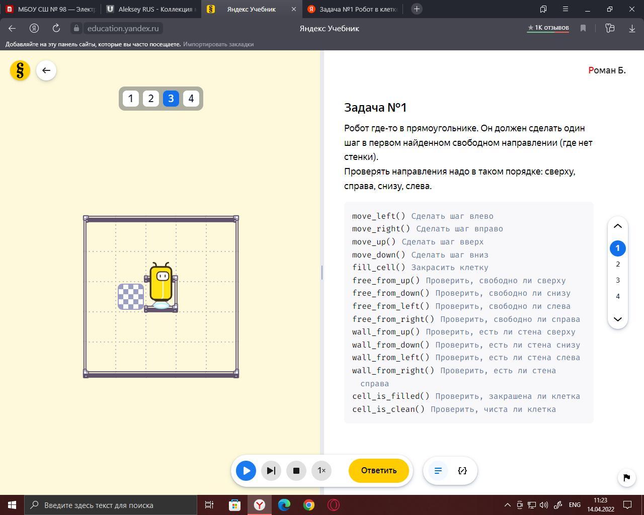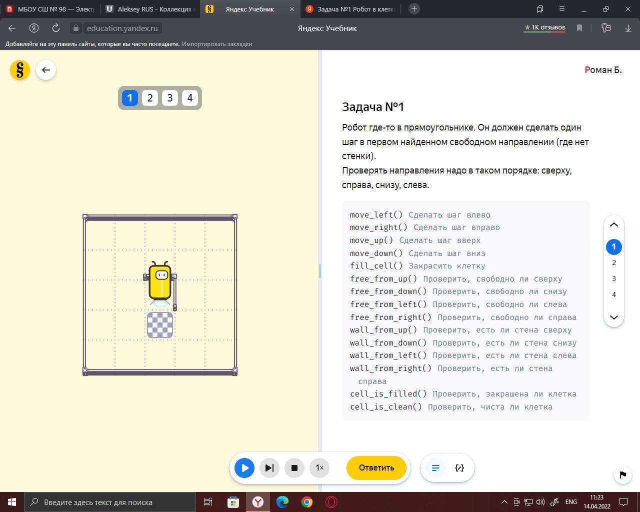 Робот где-то в прямоугольнике. Он должен сделать один шаг в первом найденном свободном направлении (где нет стенки).