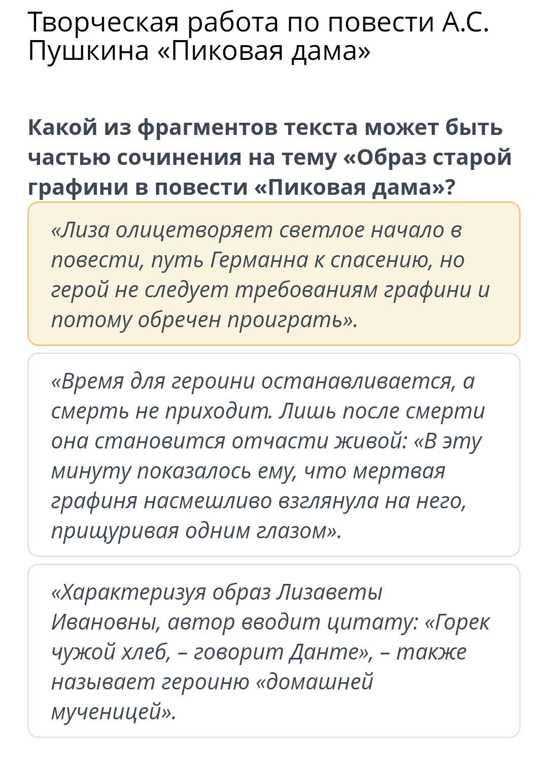 3 по счету, "характеризуя образ Лизаветы Ивановны, автор вводит цитату :" горек чужой хлеб, -говорит Данте", - также называет героиню "домашней мученицей"