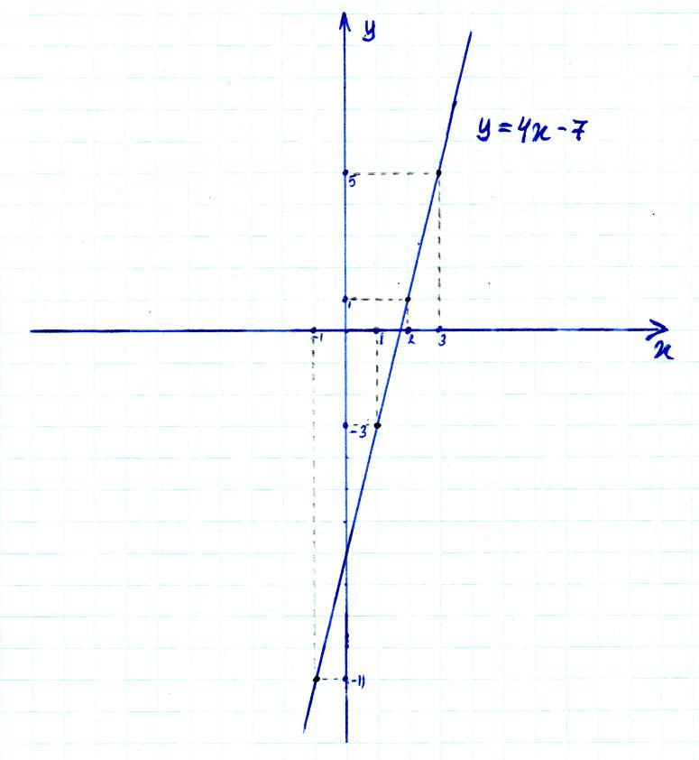 y=4x-7 построить a)найти значение функцый,если аргумент равен -3;3
